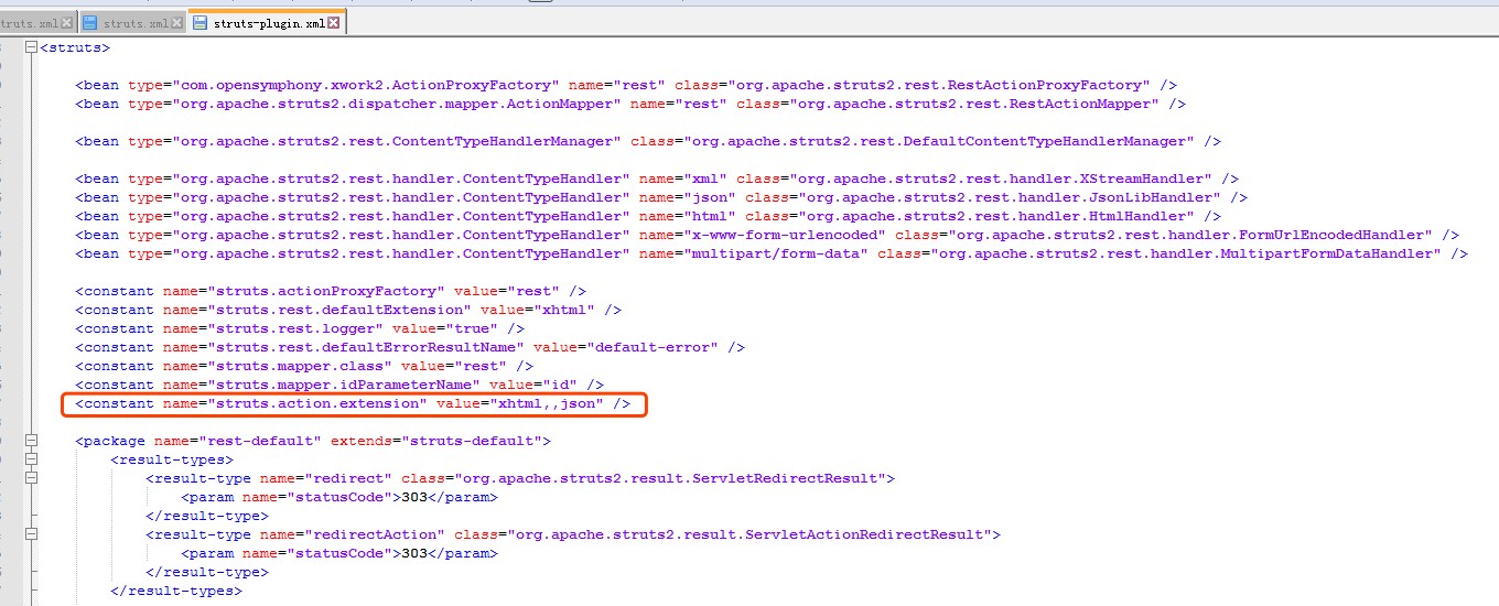 将struts-plugin.xml进行提取,修改对应的配置,重新放入压缩包中,替换原有配置: