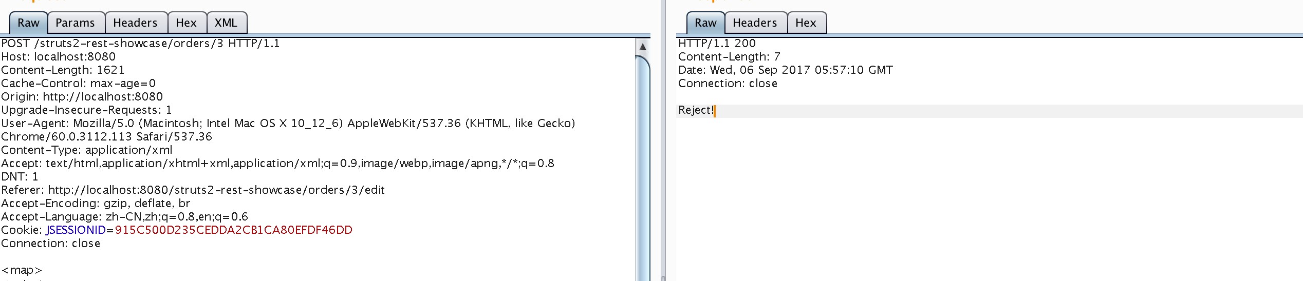 从官方地址(https://archive.apache.org/dist/struts/2.5/struts-2.5-all.zip)下载所有源码包,找到其中的struts2-rest-showcase.war直接部署到tomcat就行,当然我更喜欢手动编译,直接通过Maven编译即可。具体的部署过程这里就不详细描述,不过有点是需要注意的,由于javax.imageio的依赖关系,我们的环境的jdk版本需要是jdk8以上,jdk8某些低版本也是不行的,本文作者的版本是jdk8_102,后续的一些验证都是在这个版本上做的
