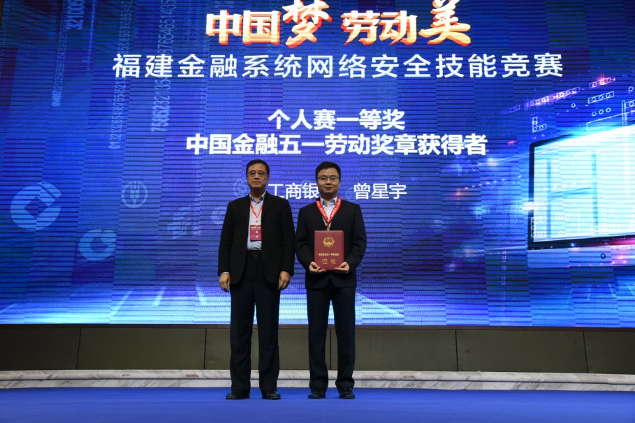 经过两天紧张激烈的角逐,来自工商银行福建分行曾星宇获得了“中国金融五一劳动奖章”称号,徐志斌、李乐天、林俊、吴佳伟获得了“福建金融五一劳动奖章”称号。