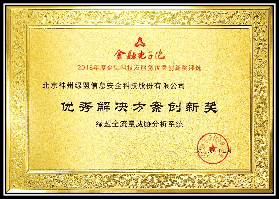昨日,由中国金融电子化公司主办的2018中国金融科技年会暨金融科技及服务优秀奖颁奖典礼在京举行,本次大会旨在更好地宣传、促进金融科技在行业的应用,表彰在金融科技和业务发展方面做出突出贡献的各类优秀项目和解决方案。绿盟全流量威胁分析系统从众多解决方案中脱颖而出,荣获“2018年度金融科技优秀解决方案创新奖”。