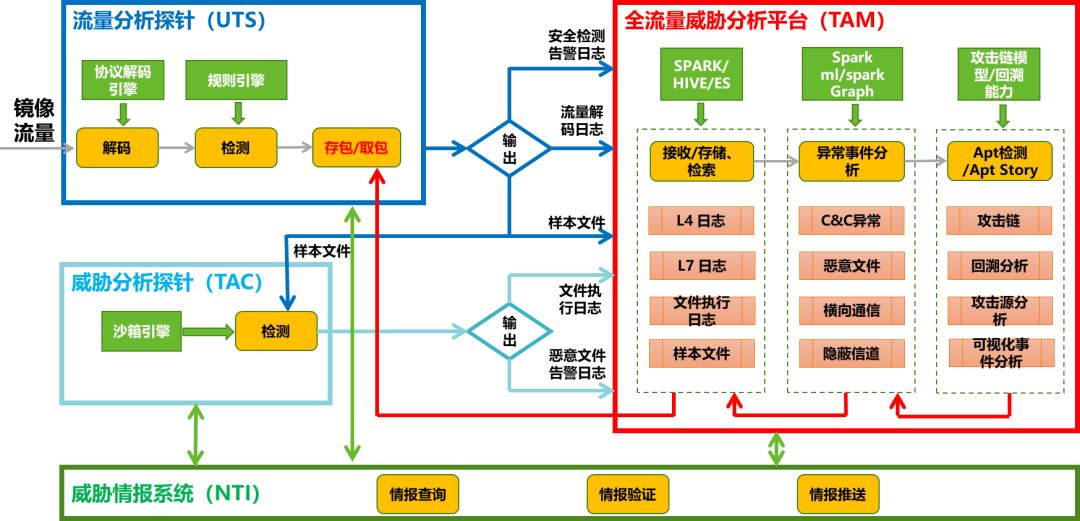 全流量威胁分析系统是绿盟科技基于多年在流量分析、大数据、机器学习、攻防对抗积累等领域积累的基础之上推出的新一代网络流量安全分析系统。该方案采用DPI技术,对原始流量信息进行深度还原、存储、查询和分析,通过融合传统规则检测、机器学习、威胁情报、虚拟沙箱、异常行为分析等多种技术,可帮助用户及时掌握重要信息系统面临的网络安全风险,及时检测漏洞利用、病毒木马等网络攻击事件,及时发现未知威胁攻击与网络安全事件线索,及时通报预警重大威胁、防范和打击网络攻击等恶意行为,帮助安全管理者快速检测失陷主机、锁定高危攻击源、实现攻击溯源。