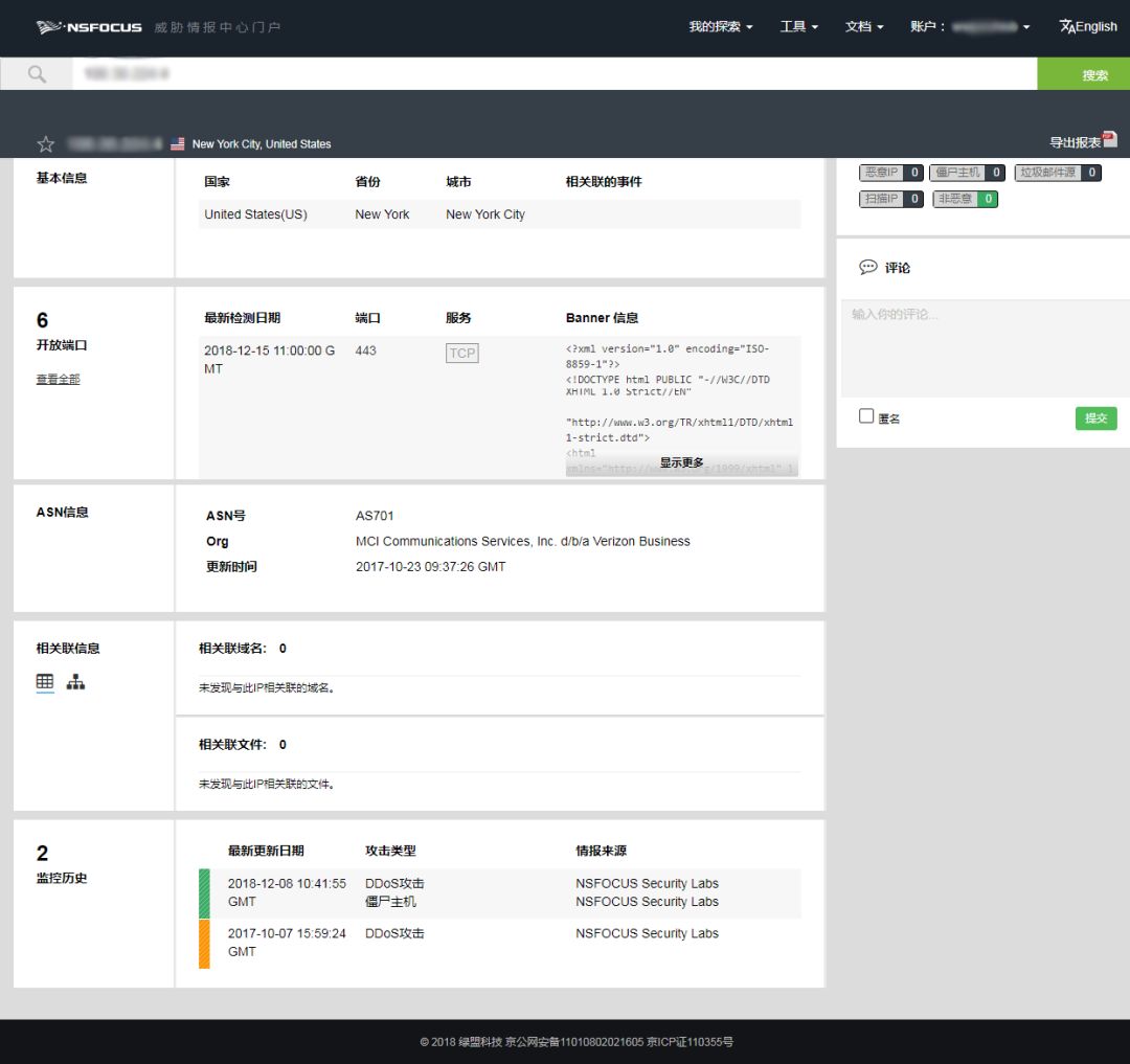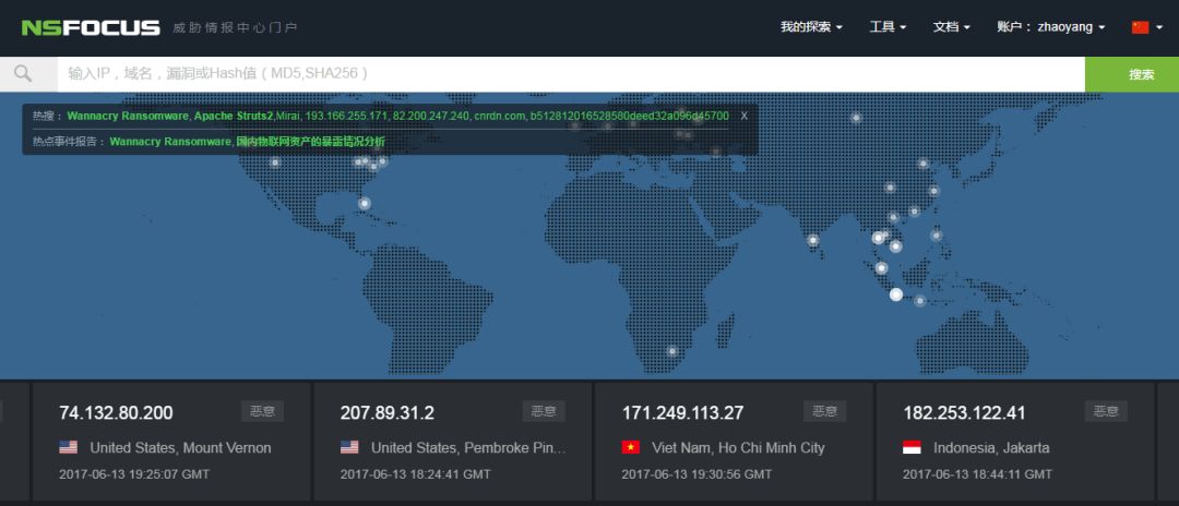 图:绿盟威胁情报平台——全球空间情报搜索引擎