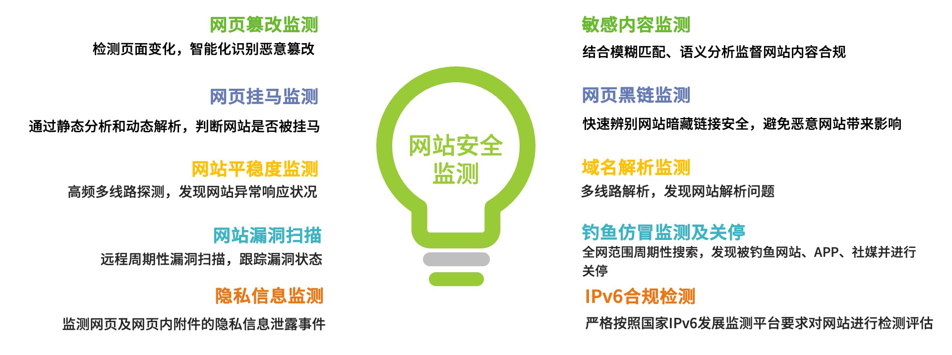 绿盟网站安全监测服务(WebSafe) 是一款面向用户网站的安全监测类托管型SaaS服务,为用户提供7*24H的安全事件监测发现与预警通告。定期出具网站安全综合评估报告,提供专业的安全建议,让用户整体掌握网站的风险状况及安全趋势,全天候守护用户的网站安全。