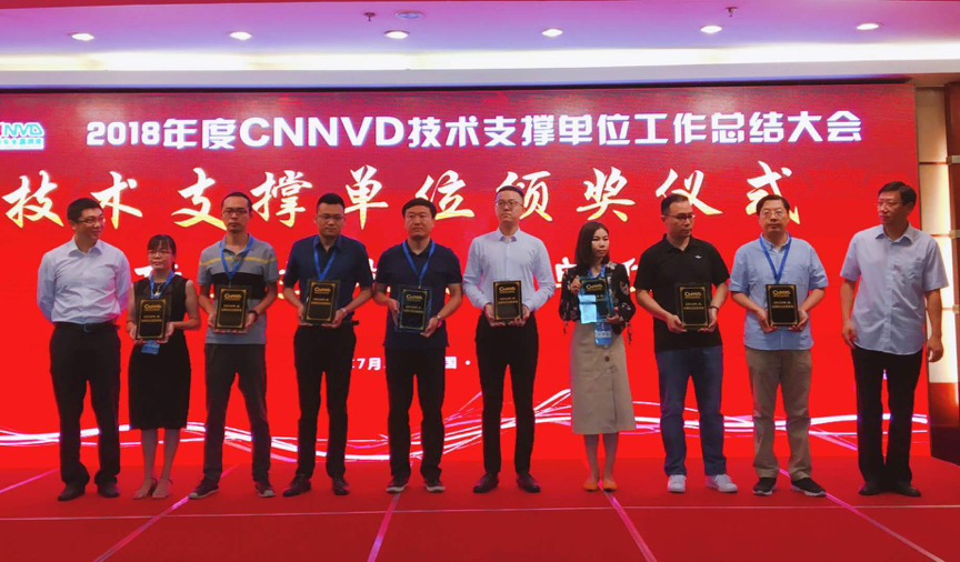 7月26日,由中国信息安全测评中心主办的“2018年度国家信息安全漏洞库(CNNVD)技术支撑单位总结大会“在北京召开,会议对2018年度为CNNVD提供技术支撑和信息安全等专项工作方面表现优异的单位进行表彰, 绿盟科技作为中国国家信息安全漏洞库(CNNVD)的首批一级(最高等级)技术支撑单位荣获“CNNVD 2018年度优秀技术支撑单位”。此次共9家企业获得此项殊荣,其中一级支撑单位5家,二级支撑单位3家,##支撑单位1家。