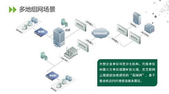 分别在总部和分支机构服务器区域部署上堡垒机系统,将第三方代维和分支机构远程运维行为进行管理和安全审计;所有远程接入的单位机构在出口路由器前部署防火墙系统。
