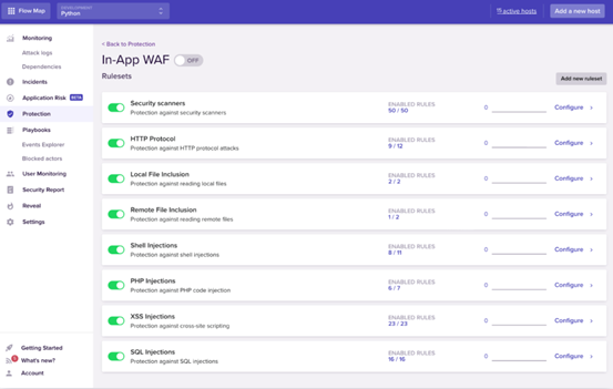 Sqreen产品平台主要包括应用程序运行时自我保护(RASP)以及In-App Web应用防护系统(In-App WAF)。
