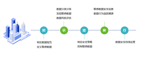 政务数据安全建设应从顶层设计出发,遵循“知、识、控、察、行”的路径,逐步建设以数据安全智能分析平台为核心的政务数据安全治理体系,确保政务业务安全运行。