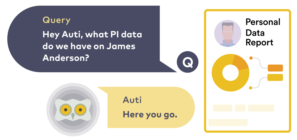 通过向聊天机器人Auti提问,可触发操作流程实现自动化执行,并生成宏观的个人数据地图和审查报告。