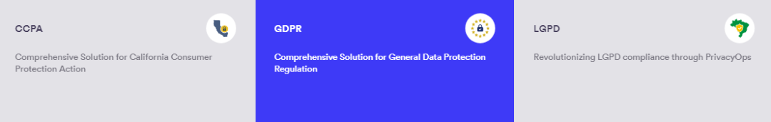 3、产品可快速组合为解决方案,目前提供CCPA、GDPR和LGPD(巴西隐私法规)的合规性方案;