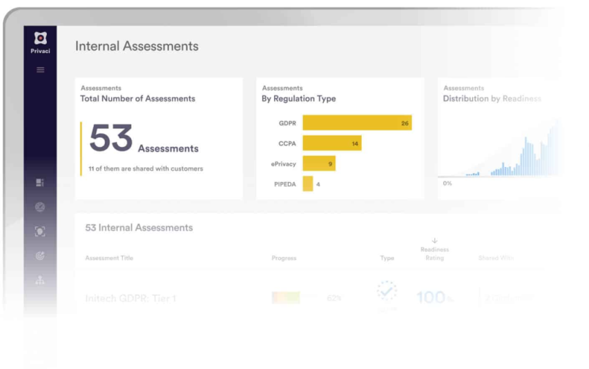 Assessment Automation(内部评估)可为企业内部的系统进行隐私风险评估。产品系统内置不同的合规性模板,如GDPR、CCPA,每一种合规性模板对应各种合规点检查列表和问题。为了高效地完成隐私风险的评估,产品提供了一个协作平台,通过它内部多位安全专家可分工对问题进行检查和回复。协作平台收集所有的输入和检查,最终生成评估报告。一旦报告生成,企业可选择与第三方组织或消费者分享,以证明隐私风险控制能力。