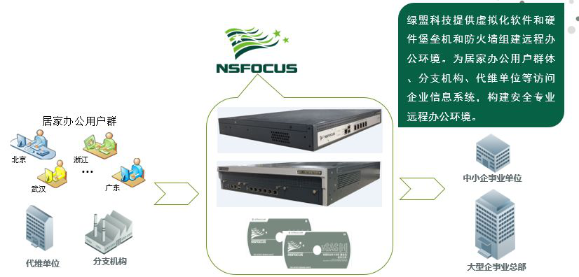 绿盟远程办公服务提供通信加密、事前识别、事中监控和事后审计等多种技术保障远程运维办公安全。