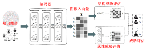 对于已有的这些威胁评估,是从不同维度来解决威胁评估问题,那么不同角度的评估如如何融合优化成为威胁评估的问题。为此,基于已构构建的知识图谱进行分析,利用图嵌入把不同维度的威胁评估映射到同一空间中,在考虑更多特征及威胁的影响情况下,在同一空间对不同实体进行威胁评估,无论是效率和精度上都比传统方法有很大提升。