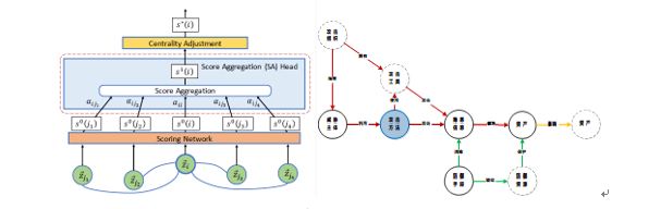 下面介绍评估模型的核心,知识图谱中包括多种实体,实体中的直接与间接关系表示着威胁传递,比如攻击者拥有攻击工具,那么该实体的威胁度就会增加,攻击者距离目标资产的距离近,那么该攻击者的威胁度就会增加等等,中心度是指图中,处理中心度上的攻击者的威胁度越大。在图神经网络中融合一跳或多跳近似训练知识图谱中不同的实体聚合的权值,然后生成新的威胁值,再利用中心度进行调整,进入下一层学习,直到满足终止条件。