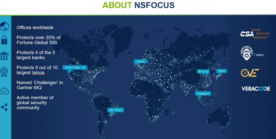 绿盟科技自成立以来,一直以“巨人背后的专家”为己任,坚持提供有核心竞争力的企业级网络安全解决方案。在2018年RSA大会上,国际权威独立测试机构 ICSA Labs 向绿盟科技颁发了满五年EIST卓越信息安全测试奖。同时,绿盟科技还连续7年获得了微软BUG BOUNTY计划激励。