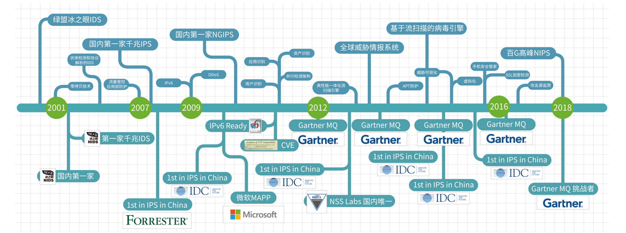 公开数据显示,“冰之眼”IDPS 自 2009 起连续 7 年国内市场占有率第一(IDC 报告),连续 6 年入围Gartner IDPS 魔力象限, 并在 2018 年进入“挑战者”象限。安全市场复杂多变,系统漏洞和新型攻击技术层出不穷,“冰之眼”IDPS 将始终以满足客户安全需求为己任,继续为客户网络提供专业的安全防护。