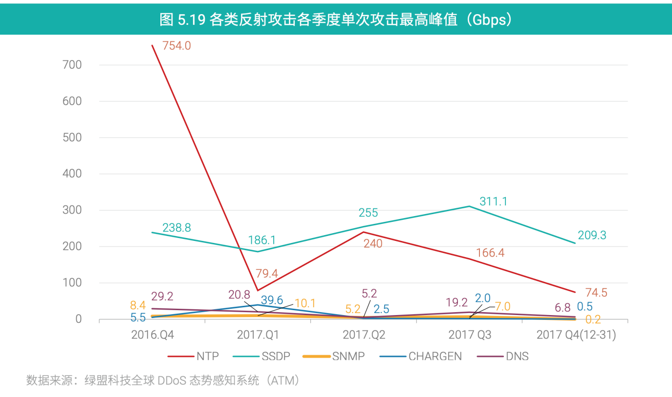 图3 2017绿盟科技DDoS威胁报告—反射攻击流量趋势图