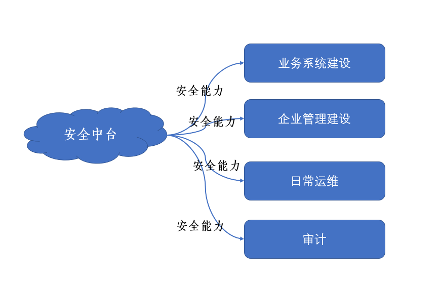 如图所示,安全中台能够提供各种不同级别的安全能力给企业内部各个相关部门,包括各业务系统建设、内部管理系统建设、日常运维操作、审计系统等,使得企业各系统可以实现快速搭建、部署、测试和拆除安全环境,降低安全部署的时间、人力成本。