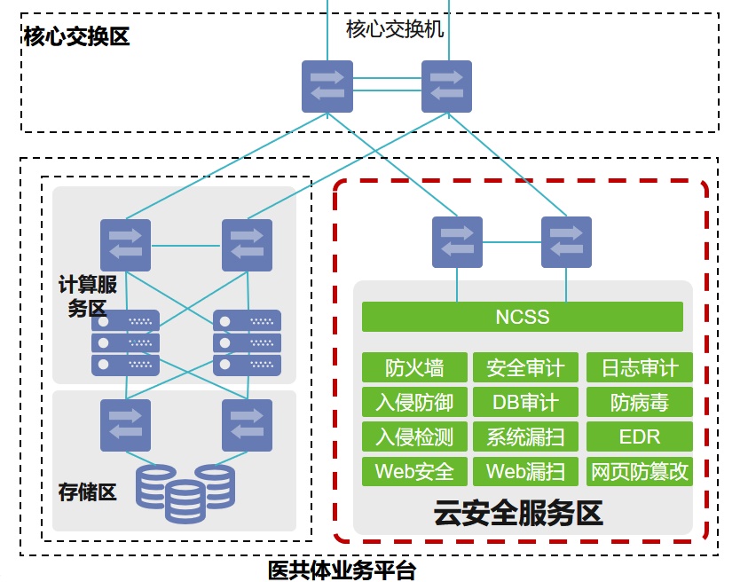 众所周知,县域医共体业务应用主要搭建在云平台上,在围绕医共体云平台进行三重防护的同时,还应以安全资源池的方式为医共体云平台提供安全资源,构建云平台自身的安全防护能力。