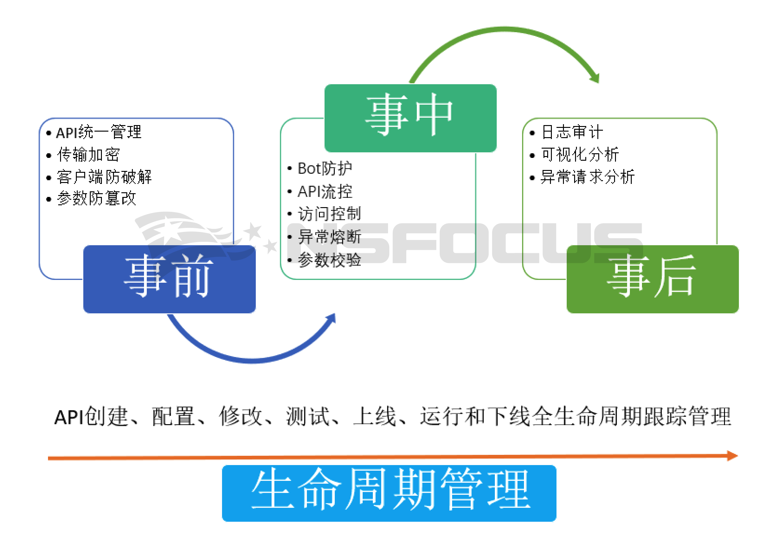 在事前、事中、事后三个环节充分重视各自对应的安全问题,在事前对API做统一管理,加密数据传输,加强API的防破解能力,防篡改能力;事中,对授权进行严格鉴定、做精准API流量控制和访问控制,重视参数校验和Bot防护,及时发出异常流量告警并执行熔断;事后,加强API的可视化分析能力,异常请求的分析能力,记录全面日志供审计。