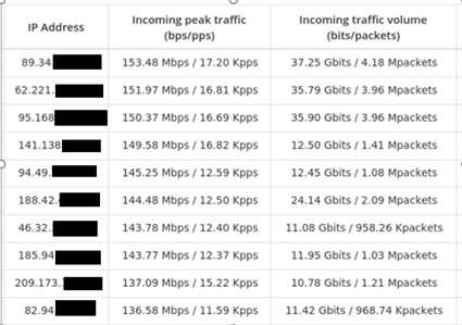 涉及的僵尸网络主要集中在英国、荷兰、卢森堡、美国等,每个攻击源峰值打出峰值为100Mbps,总量为10Gbits至30Gbits的攻击。