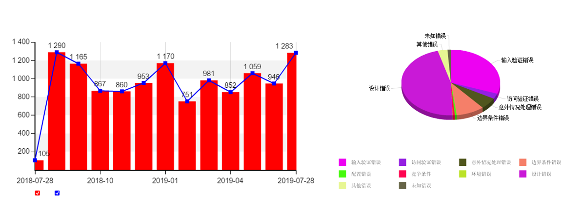 上图是绿盟君通过CNVD的数据整理出的2年内漏洞增加的数量趋势和种类分类。