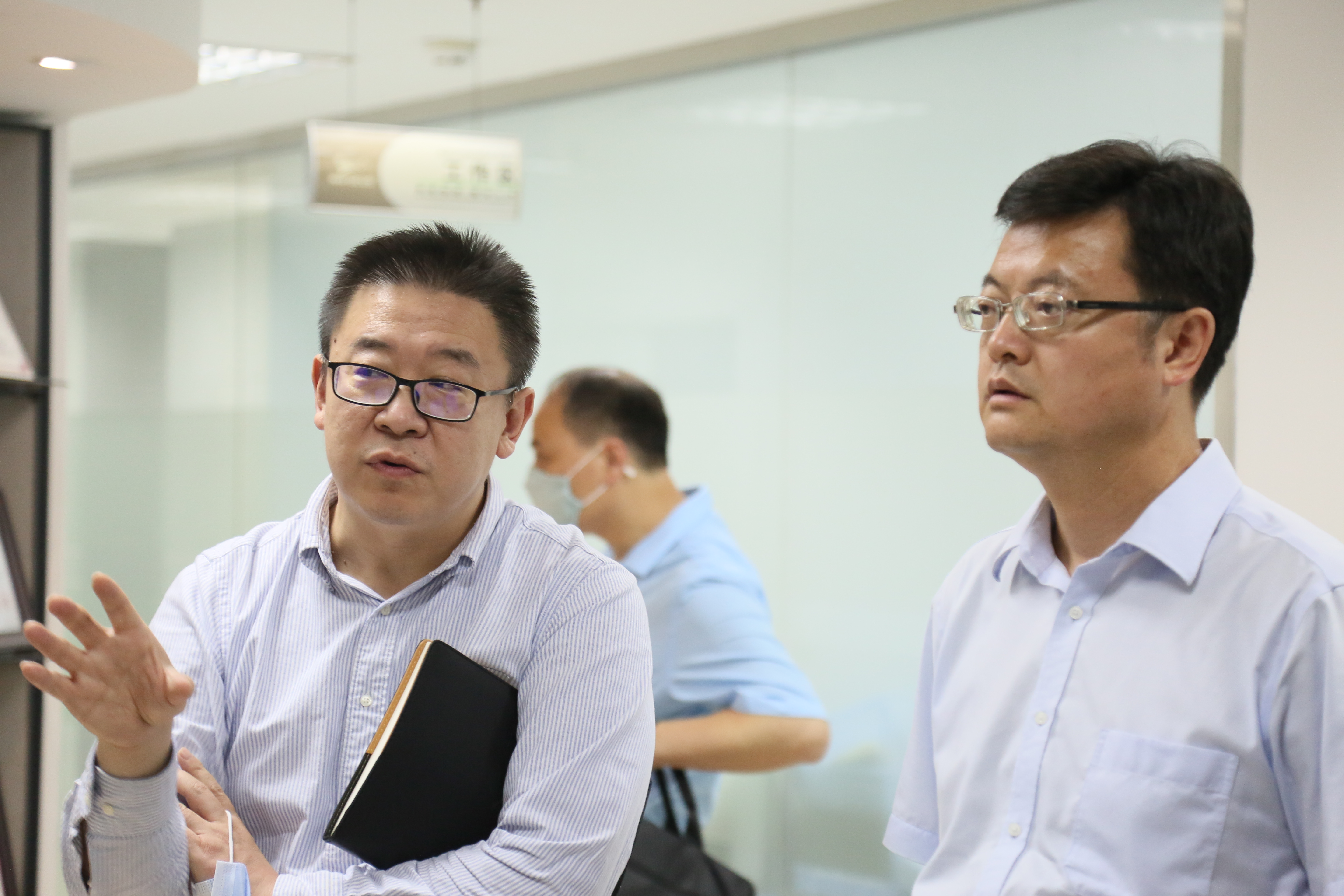 绿盟科技集团高级副总裁叶晓虎、高级副总裁孙冀平、副总裁崔媛媛对来访领导热情接待,并对绿盟科技公司情况、工业互联网探索及实践方面做了详细汇报。