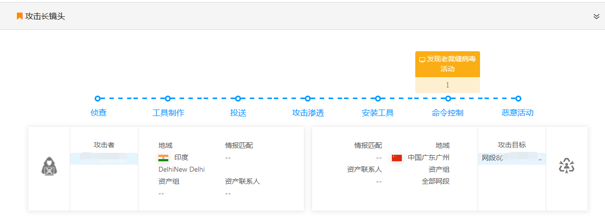 通过UEBA分析,完成账号失陷检测,主机失陷检测,数据泄漏检测,内部用户滥用,提供事件调查的上下文。通过可视化威胁狩猎能力,覆盖IP、资产、MD5及URL的线索式狩猎能力,并内置攻击者、攻击路径、攻击目标、攻击类型等。