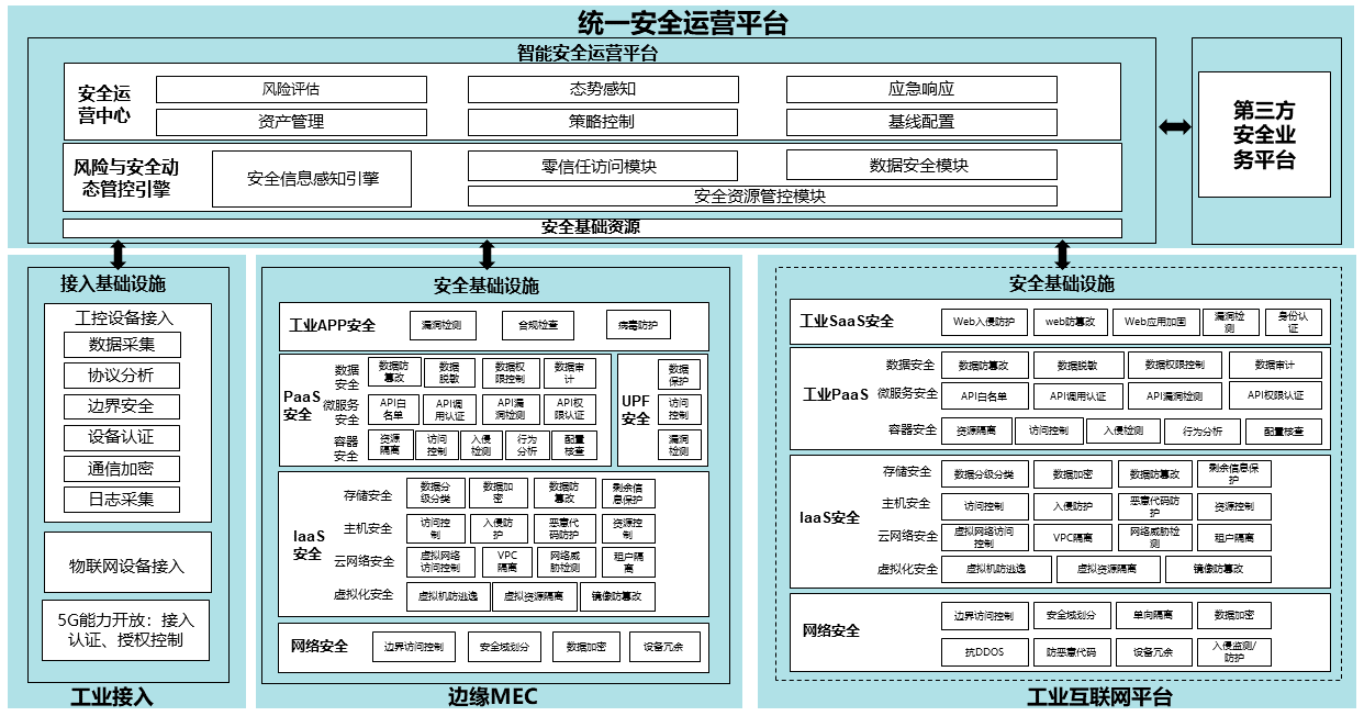 工业互联网平台安全基础设施的防护可划分为边缘、网络、平台IaaS、平台PaaS层及平台SaaS层五个层面。