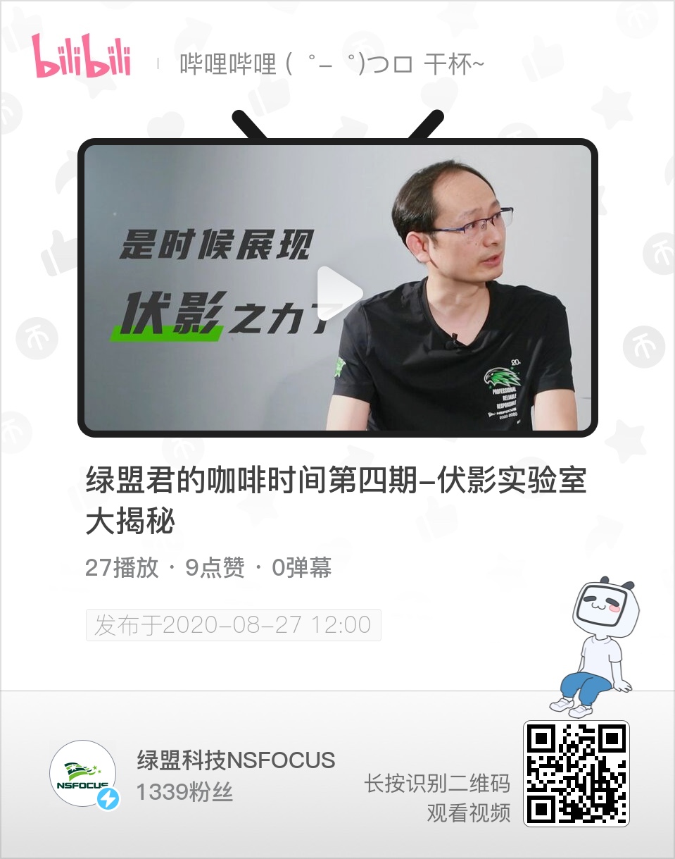 之前的三期,我们聊了安服中的关键先生,聊了烈鹰战队,还聊了如何安全地拥抱云。第四期,我们决定把镜头转向绿盟科技的五大实验室。“对抗”是绿盟科技基因。本期,我们邀请到五大实验室中最贴近这一根源的伏影实验室负责人吴铁军,从审视威胁的角度,以威胁捕获为话题,和我们聊聊他们的看家本领。
