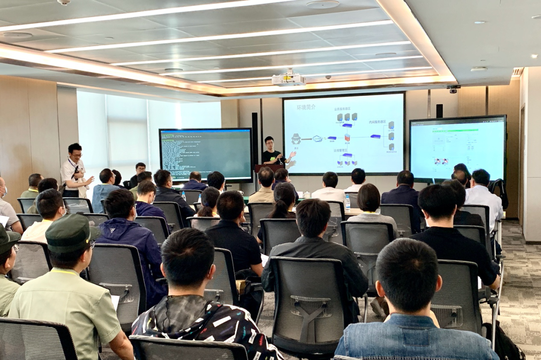 在大赛开始后,绿盟科技红蓝对抗专业安全团队在演示厅分会场为参会省领导和其他应邀领导嘉宾们进行了云计算环境中的攻击演示。攻击演示结合近年来国家网监部门通报的高危安全漏洞,通过真实的攻击操作和现场的分析讲解,为嘉宾们呈现了云计算环境中南北向和东西向的攻击方式和攻击手段,获得了参会嘉宾的一致认可和好评。