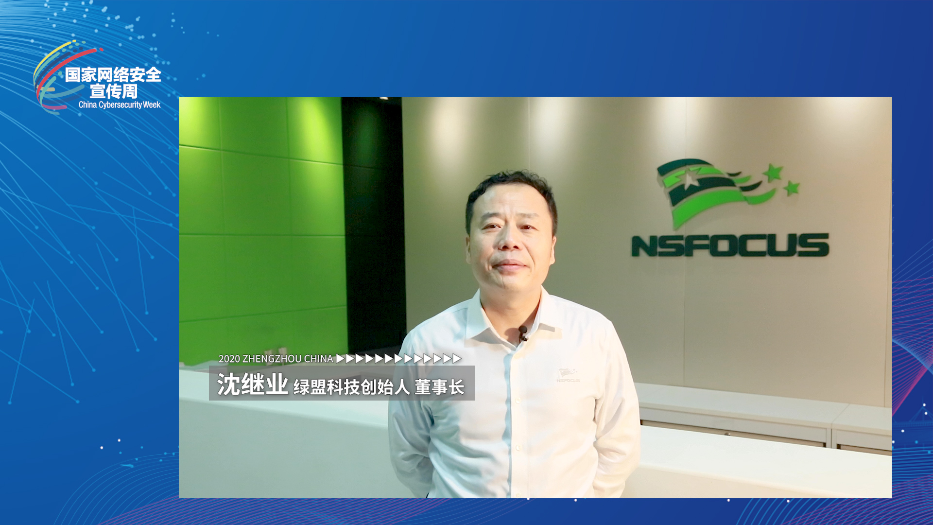 2020年国家网络安全宣传周高峰论坛在郑州举办,绿盟科技集团董事长沈继业受邀视频祝贺大会开幕。