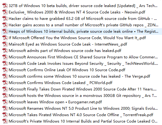 北京时间2020年9月25日,有匿名用户在4channel网站上放出了Windows XP和Windows Server 2003系统源代码被泄露的消息,在后续跟帖中出现了资源的下载地址。