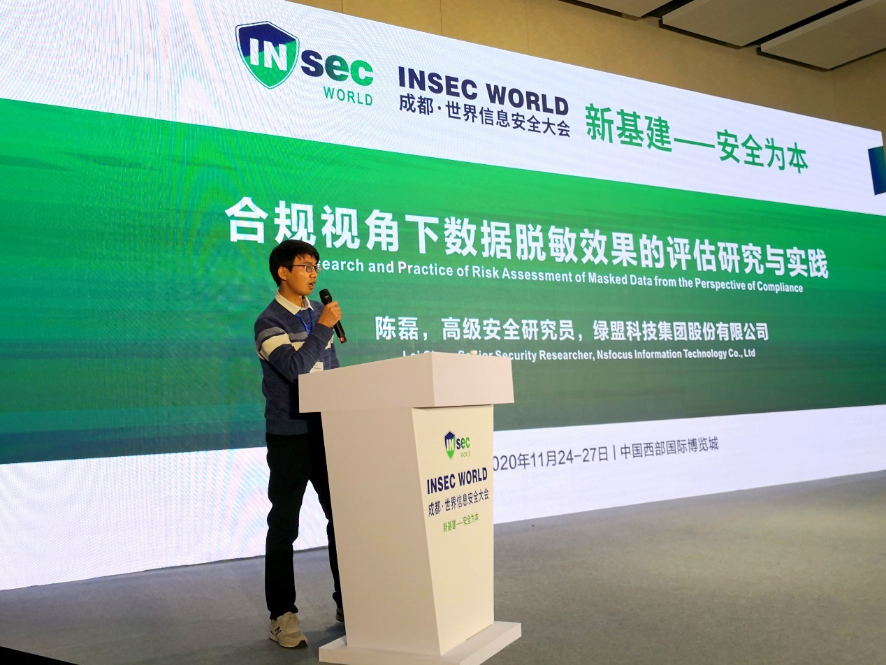 11月26至27日,INSEC WORLD成都·世界信息安全大会在成都举行。本届大会的主题是“新基建——以安全为本”。两日的议程,囊括了讨论全球信息安全顶层设计和发展趋势的主论坛,以及围绕“数据安全与云安全”、“智能安全运营”等主题进行更具针对性分享的六个分论。三名来自绿盟科技创新中心天枢实验室的研究员,作为演讲嘉宾参与了此次盛会,并分别以《合规视角下数据脱敏效果的评估研究与实践》和《AISecOps:多维度可扩展的企业侧威胁评估》为题,进行了分享。