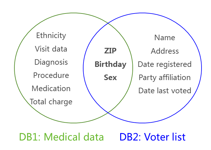 陈磊博士介绍,经过脱敏的数据集受到隐私攻击的风险,即发生隐私信息泄露,是真实存在的。攻击者可通过背景知识、网络公开的身份信息以及黑灰产等渠道获得具备关联信息的数据集,通过对两个数据集相同属性字段进行匹配与关联,可从脱敏数据集恢复出大量真实信息,甚至引发一起严重的隐私信息泄露事件。通常这种攻击被称为重标识攻击。