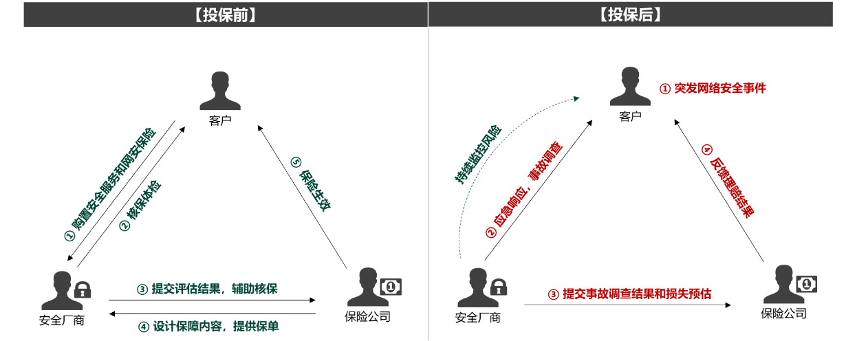通过网络安全保险服务的引入,以金融服务手段实现了企业安全风险的第三方转移,降低企业运营财务压力,增强企业事后复原力;同时,网络安全保险成为企业风险管理的网络安全保障手段之一,通过与安全服务结合作用,为企业形成了“事前识别与降低、事中监控与发现、事后响应与补偿”的动态且闭环的风险管理机制。