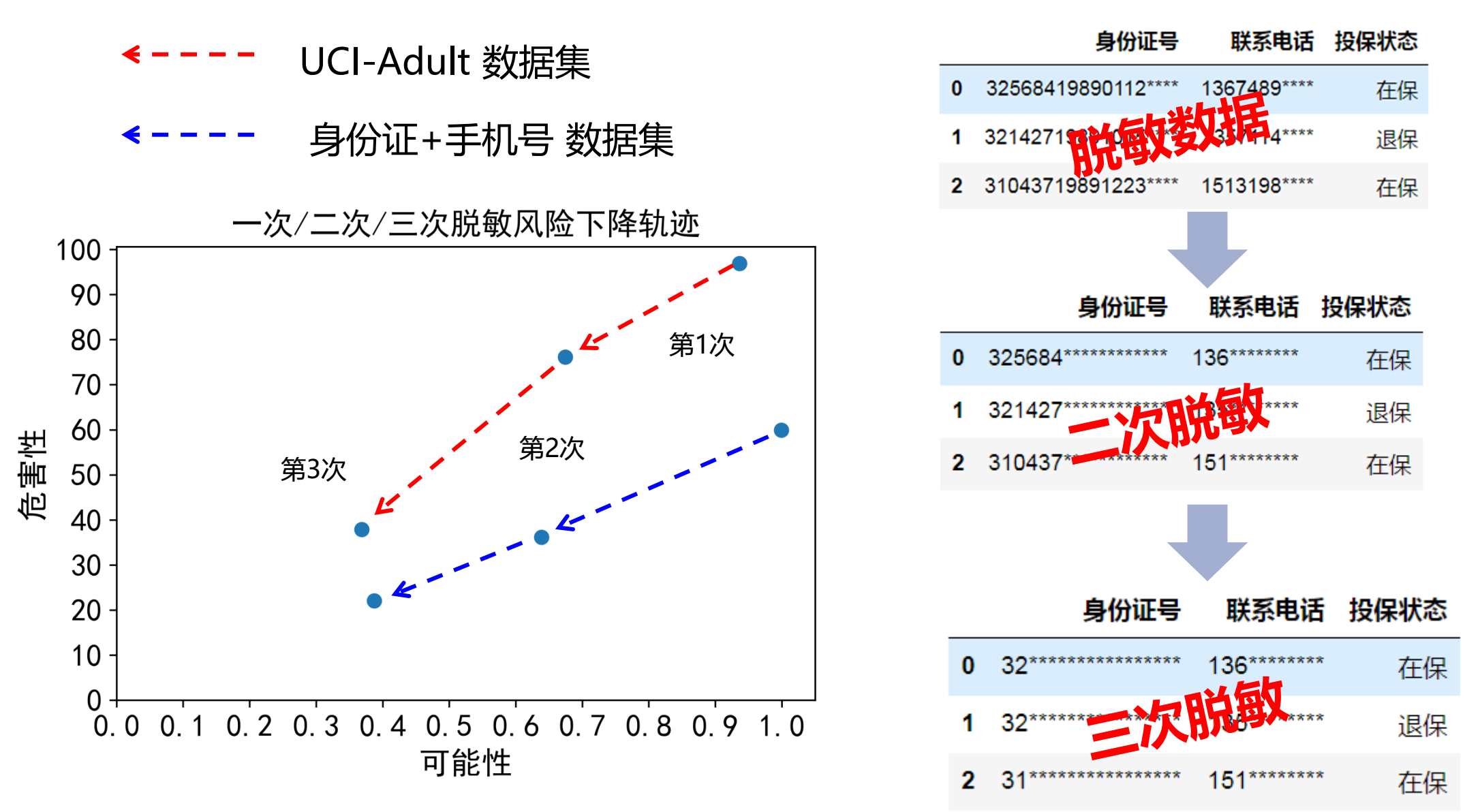 技术原理:数据脱敏在企业进行广泛应用,然而不同脱敏方法的安全效果不同。通过对脱敏数据集的身份标识度和隐私泄露风险进行定量地评估与刻画,实现风险管理和控制。