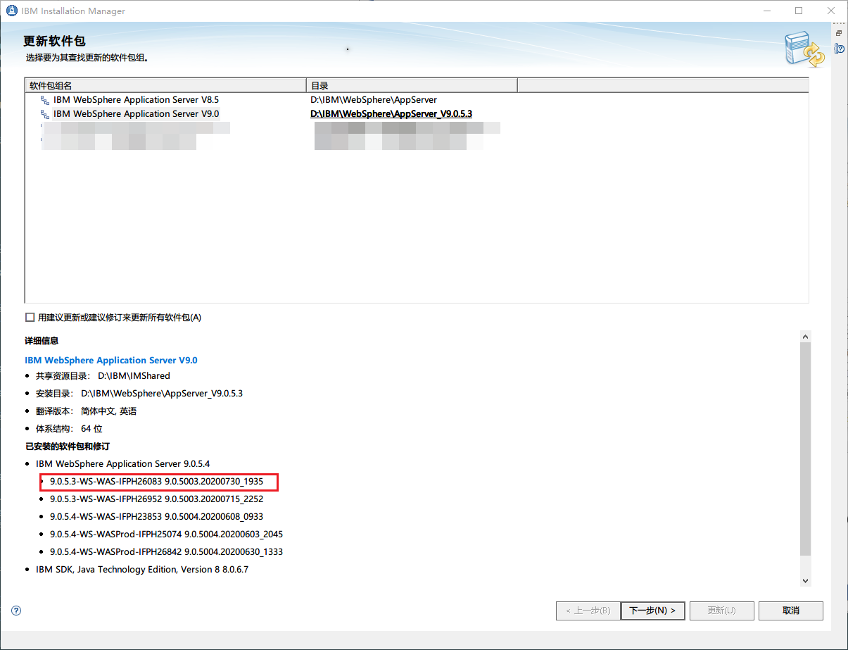 用户可通过IBM Installation Manager->更新,查看已安装的软件包和修订,检查当前是否已安装补丁PH26092。若存在该补丁信息,则不受漏洞影响。