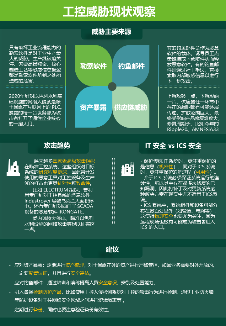 由于IT与OT的界限逐渐模糊,攻击者也不再局限于将目标锁定在个人或者企业,而是瞄准了包括关键基础设施在内的工控行业,攻击造成的影响已经跨越了网络空间,人们生活中已经可以实际感受到,例如停电,停水等。