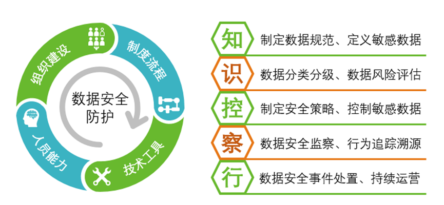 绿盟数据安全解决方案将数据安全建设中的各项能力进行汇总与构建,形成了解决方案总体架构。