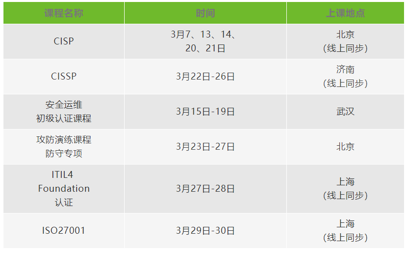 人勤春来早 学习正当时|绿盟科技网络安全学院3月培训课程安排