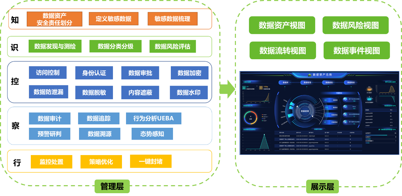掌握数据的全生命周期是对数据风险的提前预知,对数据的生命周期中各个环节做监控,掌握数据的动态,了解数据的流向,提前对可能发生的数据泄露风险进行预警,保障数据在安全的可控范围内流转、使用与存储。