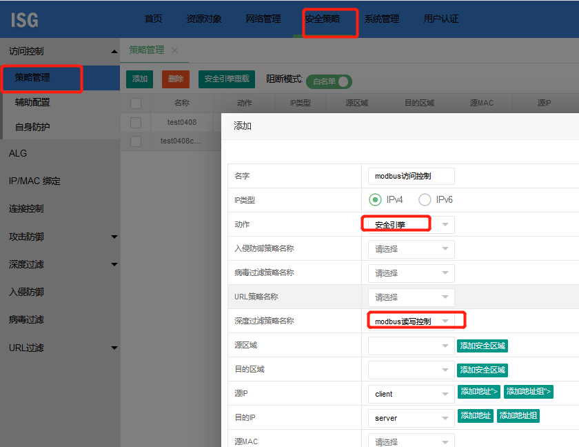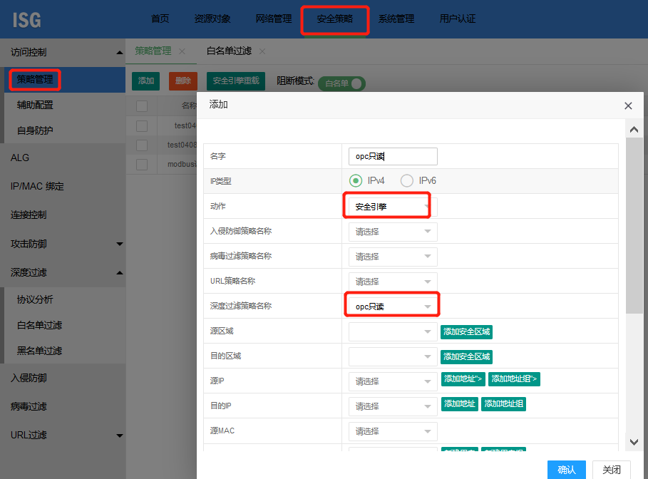 ISG入侵防御功能借助可持续升级的入侵规则库对流量进行检查,若判断其为入侵行为后,用户可自行配置处理方式,或告警或拒绝,能够对工业系统中无法升级更新的系统进行更好安全保护。