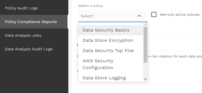 用户可以根据自己的需要,选择感兴趣的数据安全策略项,并导出该项策略的合规性报告。
