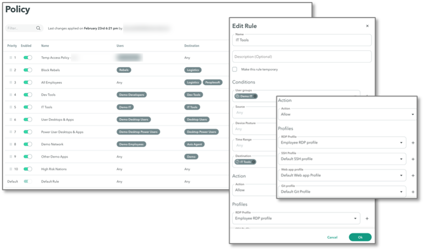 Application Access Cloud提供了易于理解的策略和安全策略定义方式,便于用户自定义安全策略: