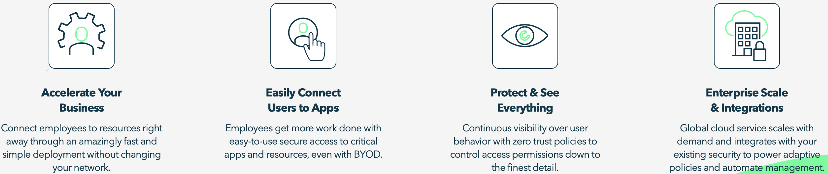 作为一种基于云的零信任解决方案,Application Access Cloud能够确保企业员工从任何地方安全访问,并具有简单的云迁移流程。