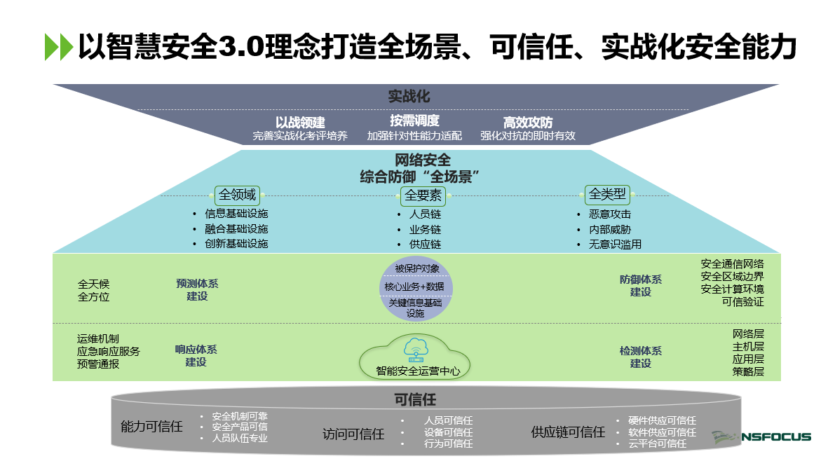 绿盟科技时刻洞悉国内外的安全形势,针对智慧广电安全业务云化、融合和泛化等特点,基于智慧安全3.0理念,打造全场景、可信任、实战化的安全能力。