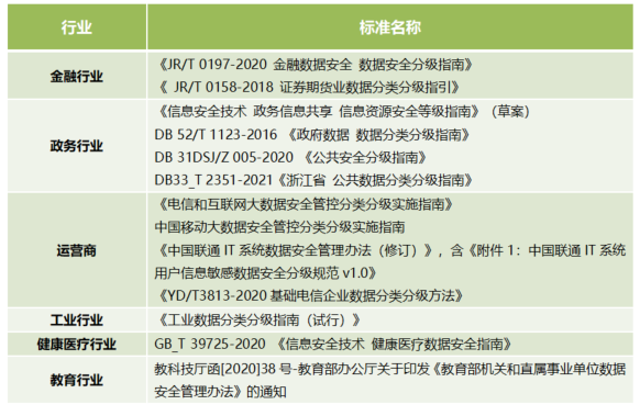 目前国内有很多行业、地方已经制定了数据分类分级的标准,详细阐述了数据分类分级的流程与步骤,相关行业、地方的分类分级标准如下: