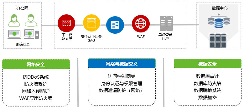 数据价值被越来越多人的广泛认识,国内外很多企业都已建立了数据安全管理部门,与原来负责传统网络安全部门平级。在网络与数据安全中间确实存在着一些交叉部分,比如在身份认证、权限管理、访问控制等方面。我们建议从基于零信任架构和网络数据防泄漏两方面建设。零信任的做法是先信任,后连接,只有通过动态的认证和授权,才可能发起对数据资源的访问连接,这是和传统网络安全方法的主要区别。同时对网络数据传输过程中数据内容的进行监察,保障数据在可控范围内正常使用。