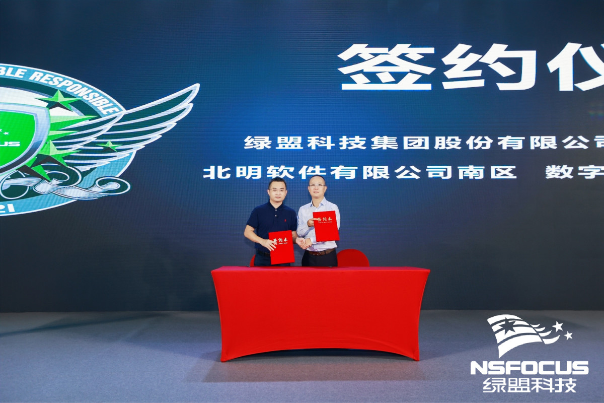 会上,绿盟科技与北明软件有限公司、广东远蓝信息科技有限公司进行了战略合作伙伴签约仪式。