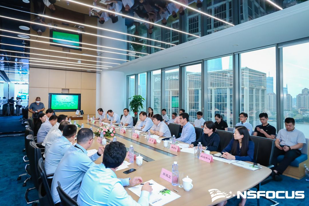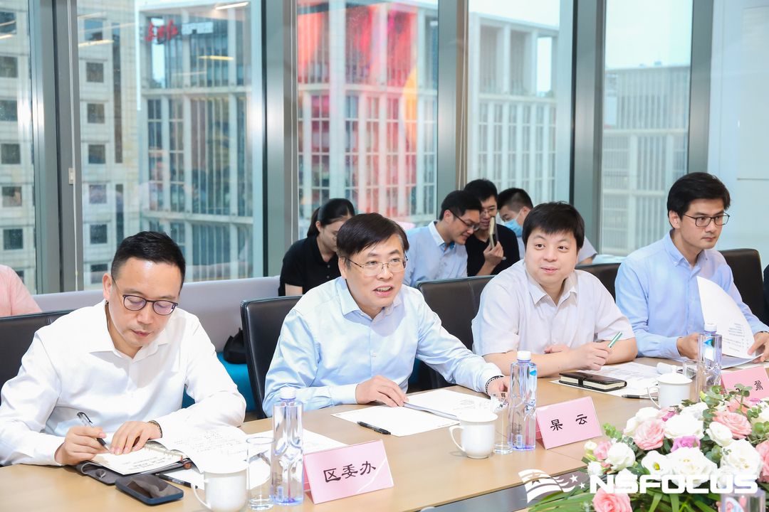 绿盟科技集团总裁胡忠华就公司总体情况向区委区政府领导做了汇报。二十余年来,绿盟科技聚焦安全领域,依托持续在研发上的高投入以及贴近一线的组织建设,公司保持稳健发展。面向智慧城市建设、城市安全治理、金融发展高地打造、关键信息基础设施保护等方面,绿盟科技期待在黄浦区不断集聚优秀人才,凝练核心技术,提供客户化的产品、解决方案、服务及安全运营。未来,绿盟科技希望在区委区政府的指导下,进一步立足黄浦,辐射华东,推动安全产业发展,形成集群效应,助推城市数字化转型工作安全落实。